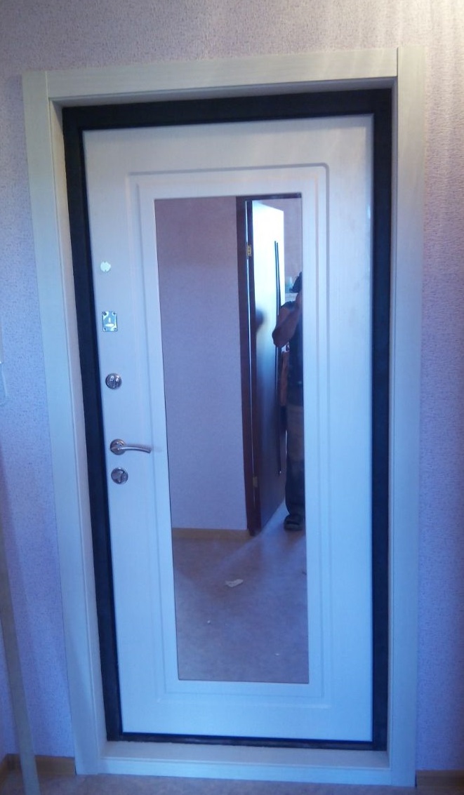 Входная дверь с зеркалом внутри квартиры обеспечивает дополнительное удобство. Она позволяет быстро проверить внешний вид перед выходом, экономя время и обеспечивая уверенность в себе. Это особенно ценно в условиях современной городской жизни, где каждая минута на счету. К тому же, она экономит пространство, которое обычно требуется для размещения отдельного зеркала. - Высокое качество и долговечность